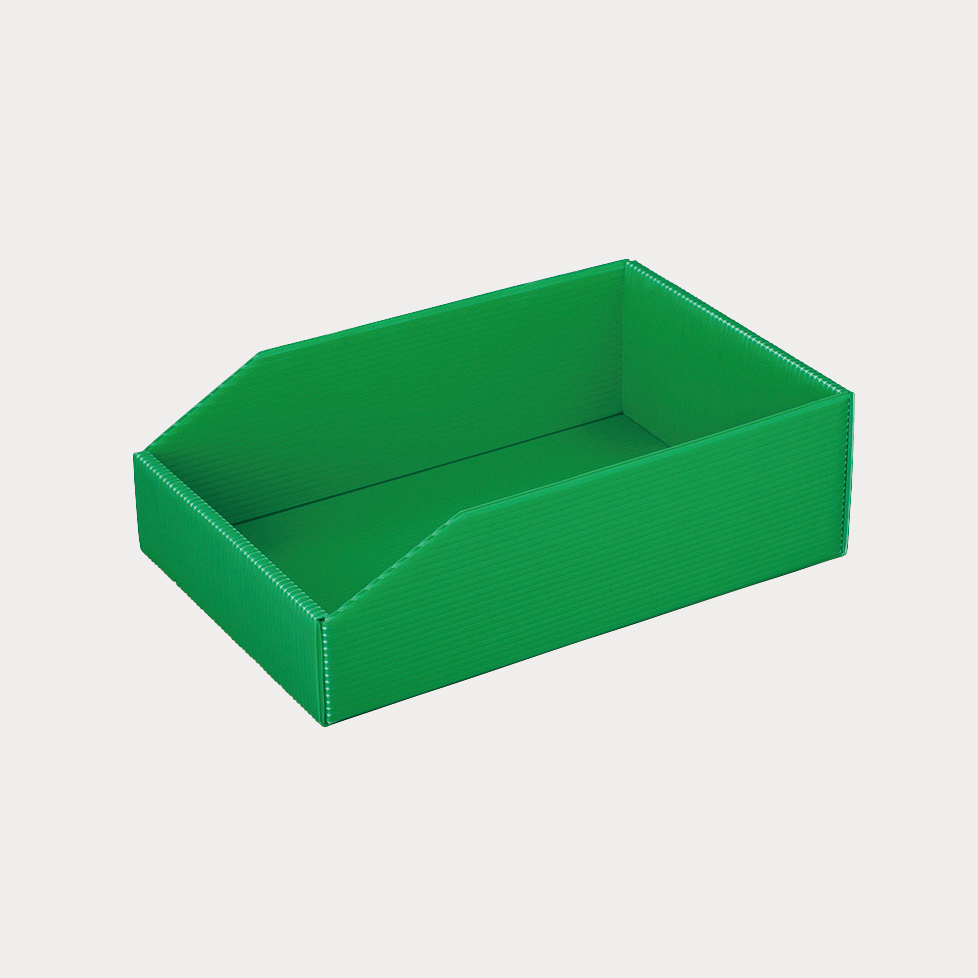 また、樹脂素材の中でも耐薬・耐水・耐油性に優れたポリプロピレン製で紙ダンボールより強度があり、繰り返し使用することによりコスト削減にも大きく貢献します。精密機器、プリント基板の通い箱や重量物の運搬、工場内の長期保管箱など様々な用途でご使用いただけます。
