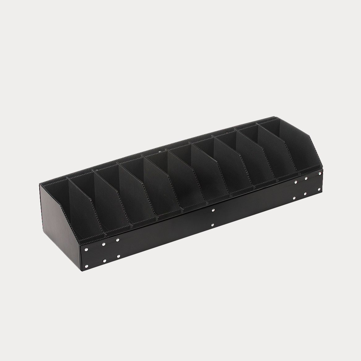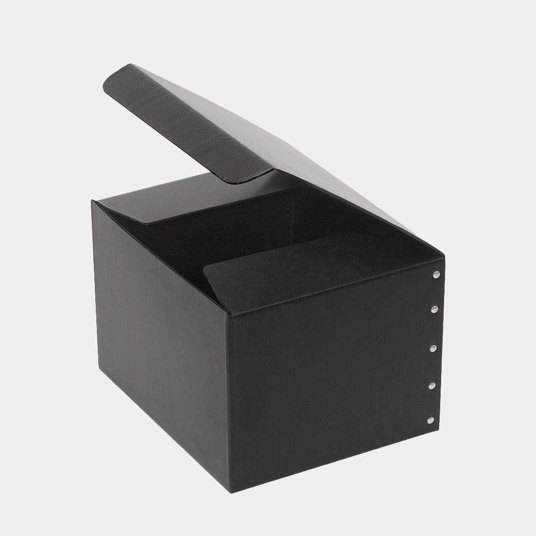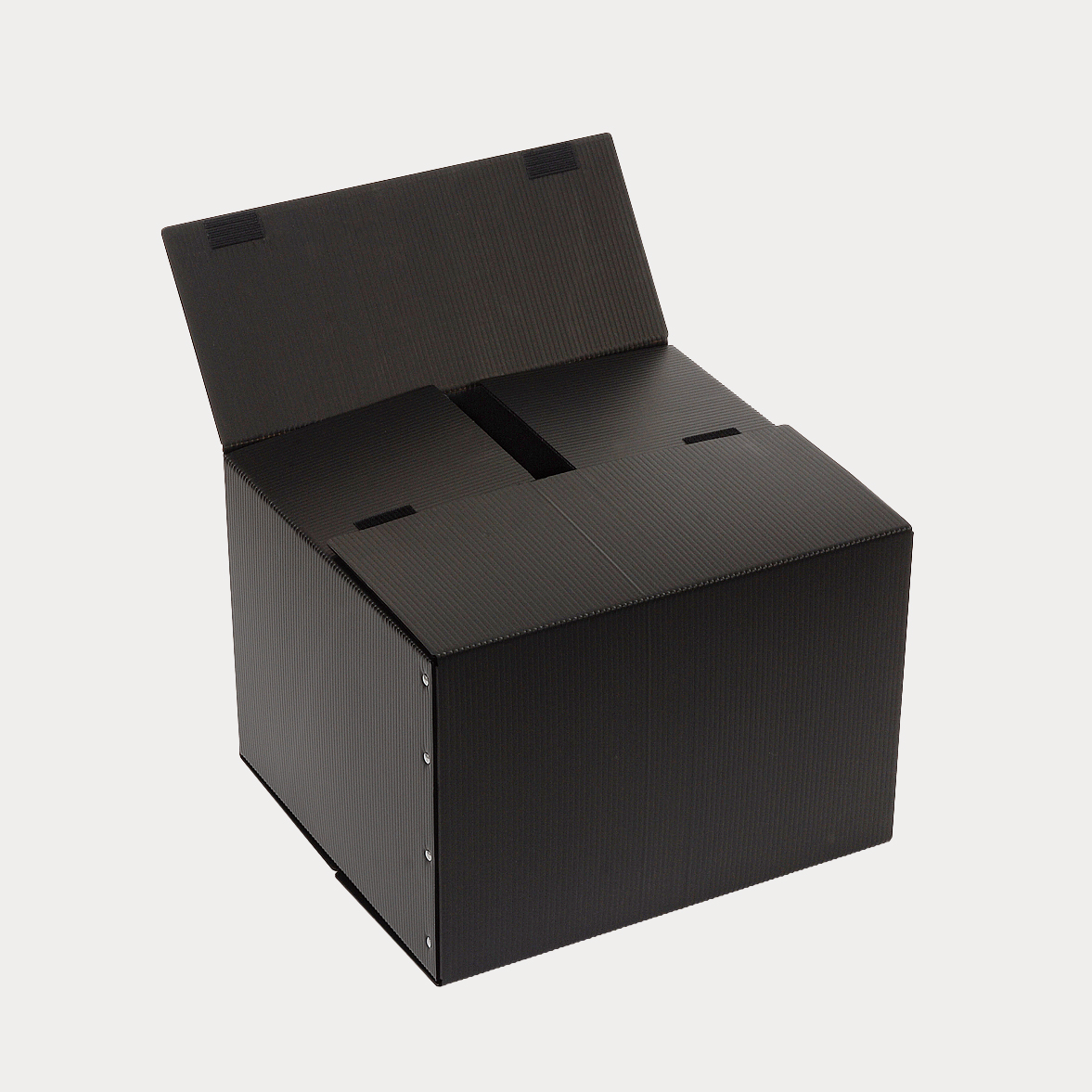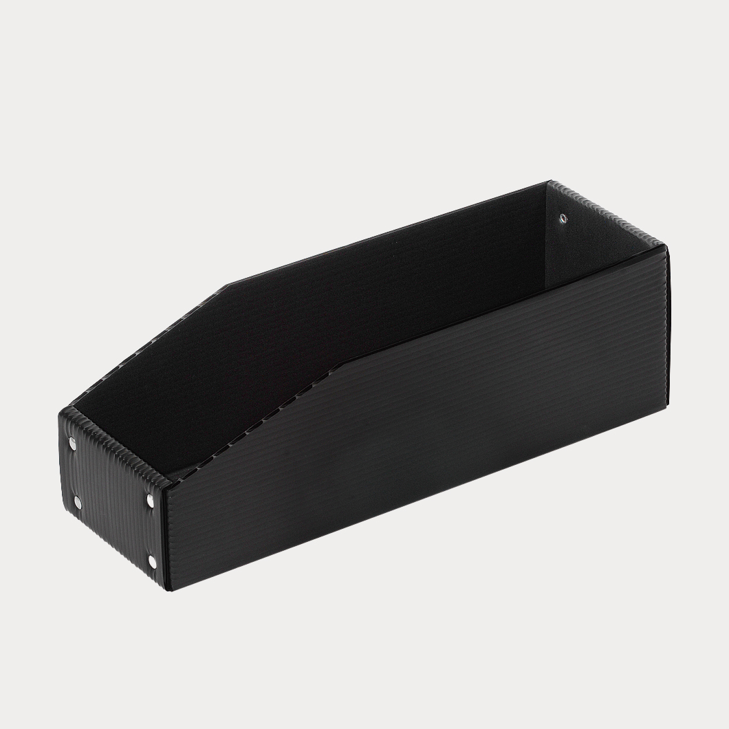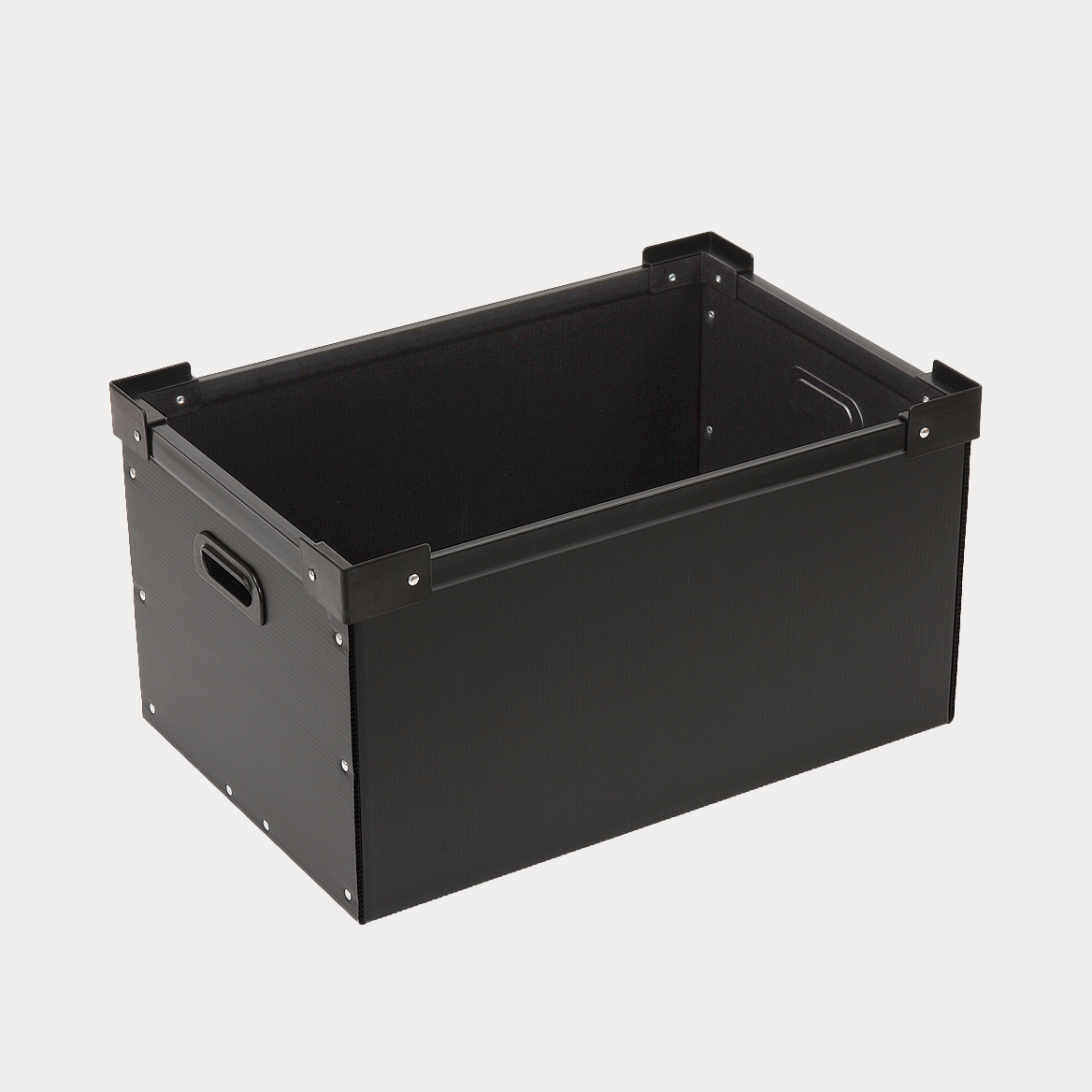 また、樹脂素材の中でも耐薬・耐水・耐油性に優れたポリプロピレン製で紙ダンボールより強度があり、繰り返し使用することによりコスト削減にも大きく貢献します。精密機器、プリント基板の通い箱や重量物の運搬、工場内の長期保管箱など様々な用途でご使用いただけます。