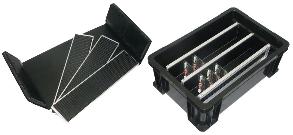 成型品コンテナやダンプラボックスを使用し、基板のサイズや入数などに合わせてオーダーメイドで製作いたします。