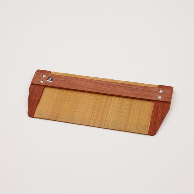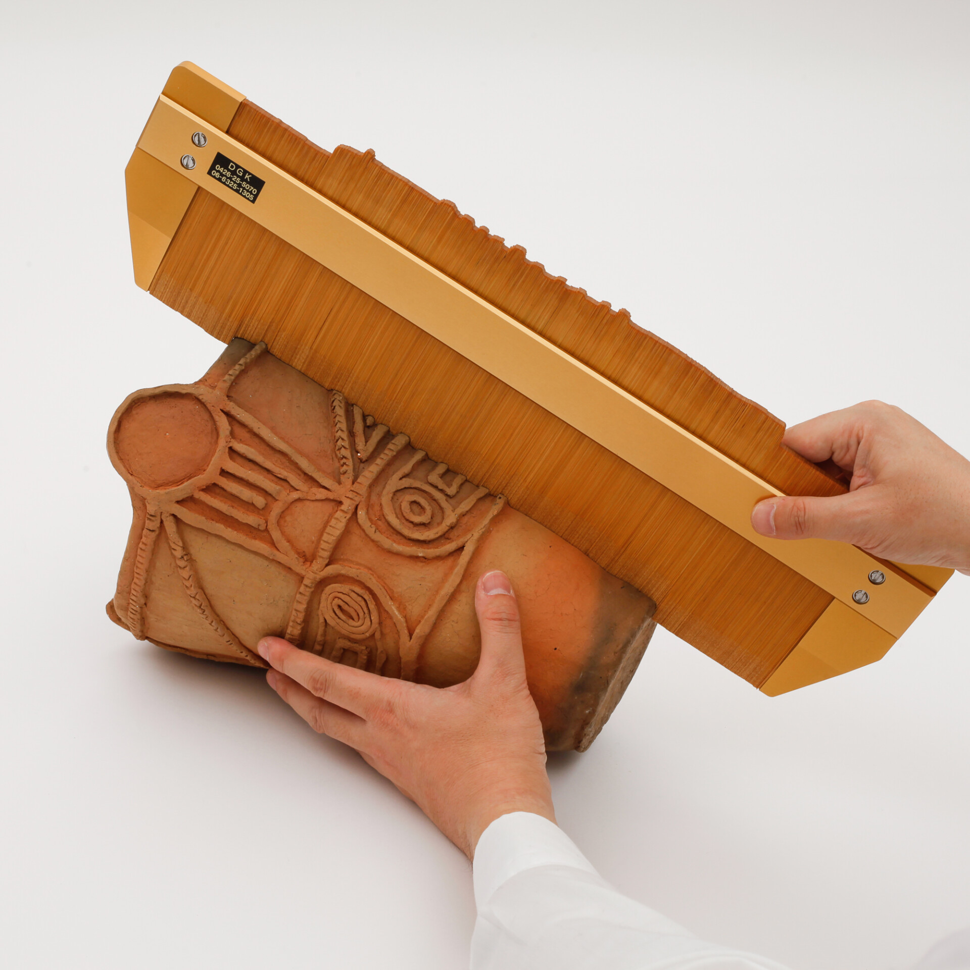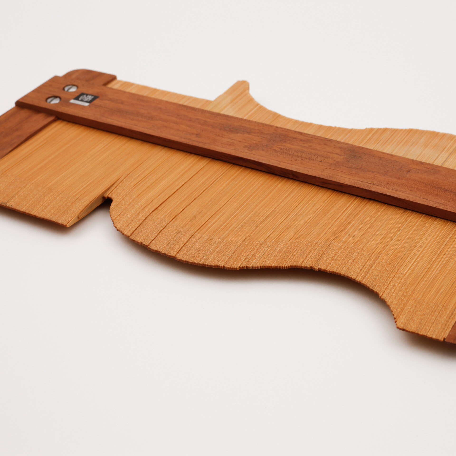 竹刃は1枚0.5mm程度の薄さで柔らかく、自然の竹素材特有のしなりがあり、土器を必要以上に傷つけずに実測することができます。また、竹刃は軽量で指への負担も少なく、長時間使っても疲れにくく、非常に丈夫なため長年にわたってご使用いただけます。加えて木製のフレームは使用感や手触りを追及して日本の職人が作っており、質感が良く温かみがあります。