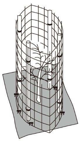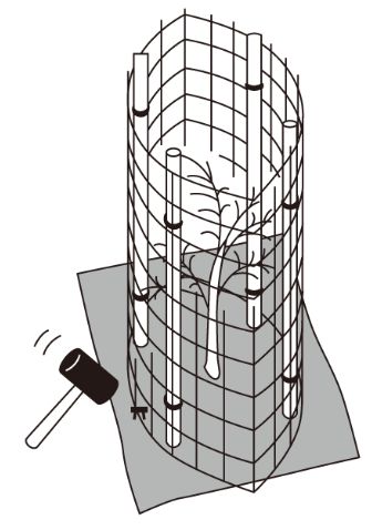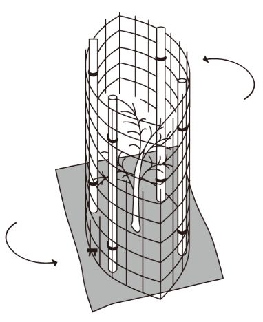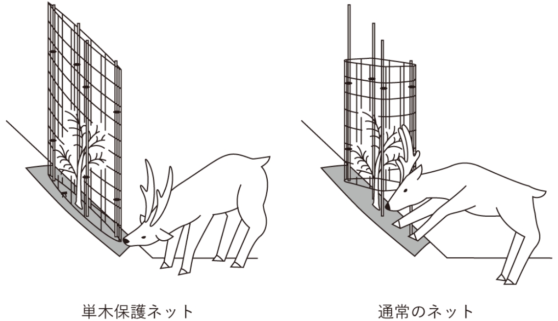 苗木を鹿などの野生生物の食害から守るための単木保護ネット