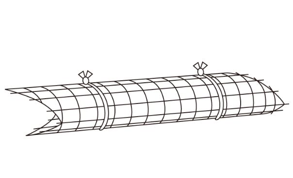 斜面に合わせてネットが斜めに自立するように設計してカットしております。斜面に対して前後ろ約2mの高さまで保護できます。ネットは網目状ですので通気性が良く自立性があり、鹿がジャンプするなどの攻撃や多少の雪の重みにも耐えられるような固さのものを使用しています。このような網目状のPP製のネットであれば鹿にネットが噛み千切られるなどの被害も軽減できます。ネットをしっかりと下までピンで打ち込んでおけば鹿などがネットの下の隙間などからも入りづらくなります。ネットは耐久性に優れており、取り外しもできますので、再度使用することもできます。